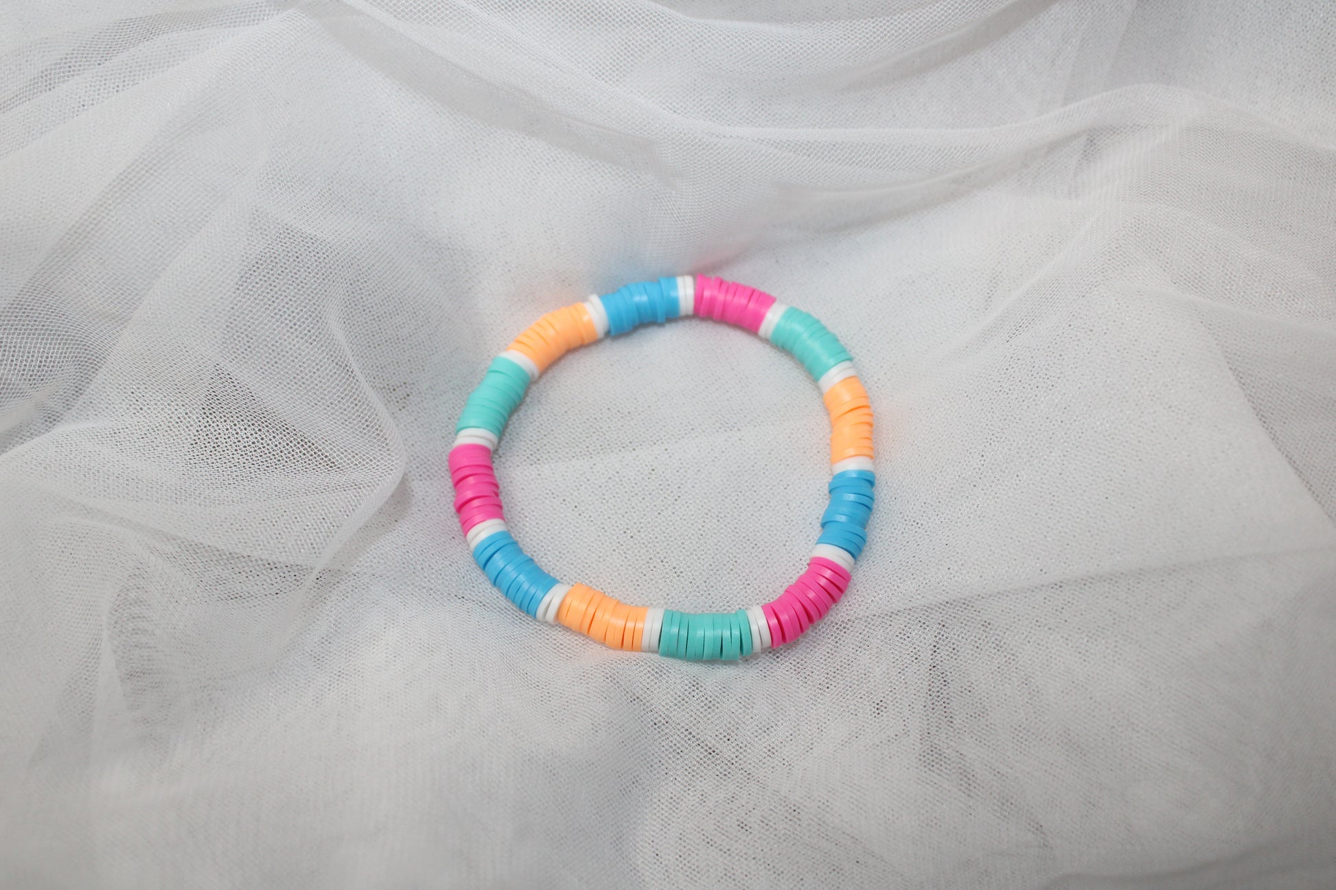 Bold, bright, and ready to party — the Color Parade Bracelet brings major fun to your wrist. With its smooth rainbow-toned disc beads in a perfectly stacked pattern, this piece is made to stand out. Whether you're stacking it with others or wearing it solo, it’s your daily dose of color and confidence.