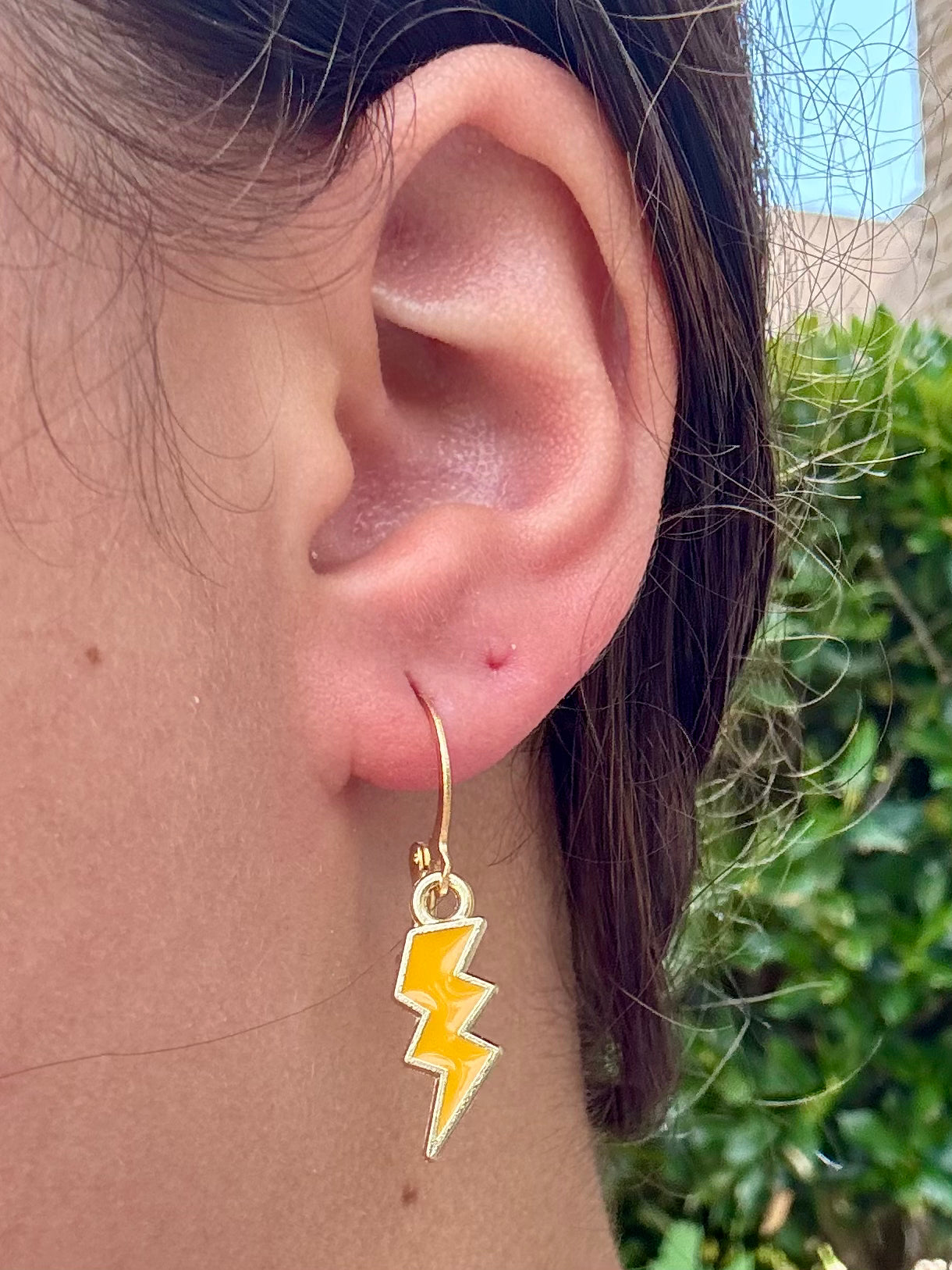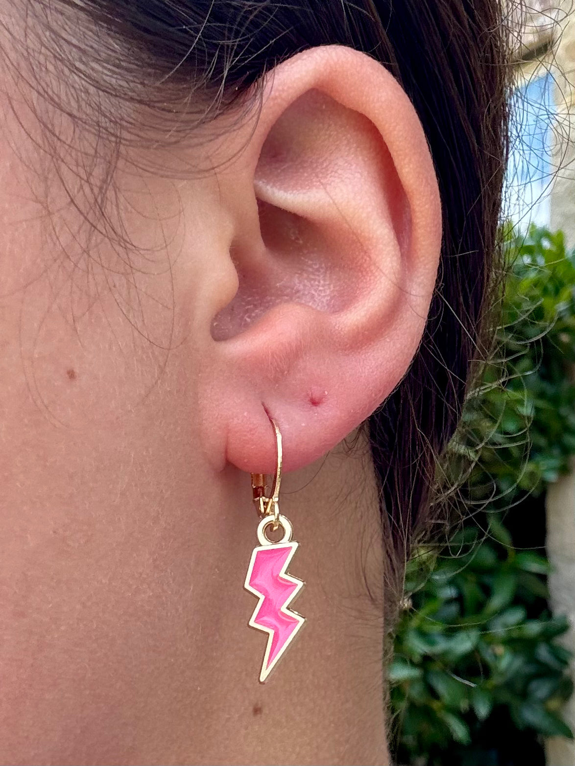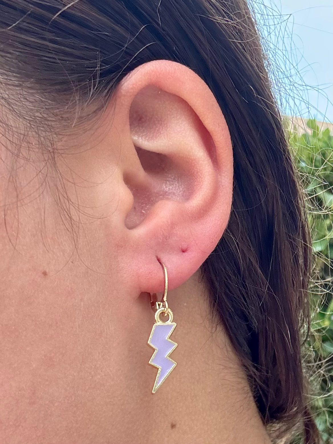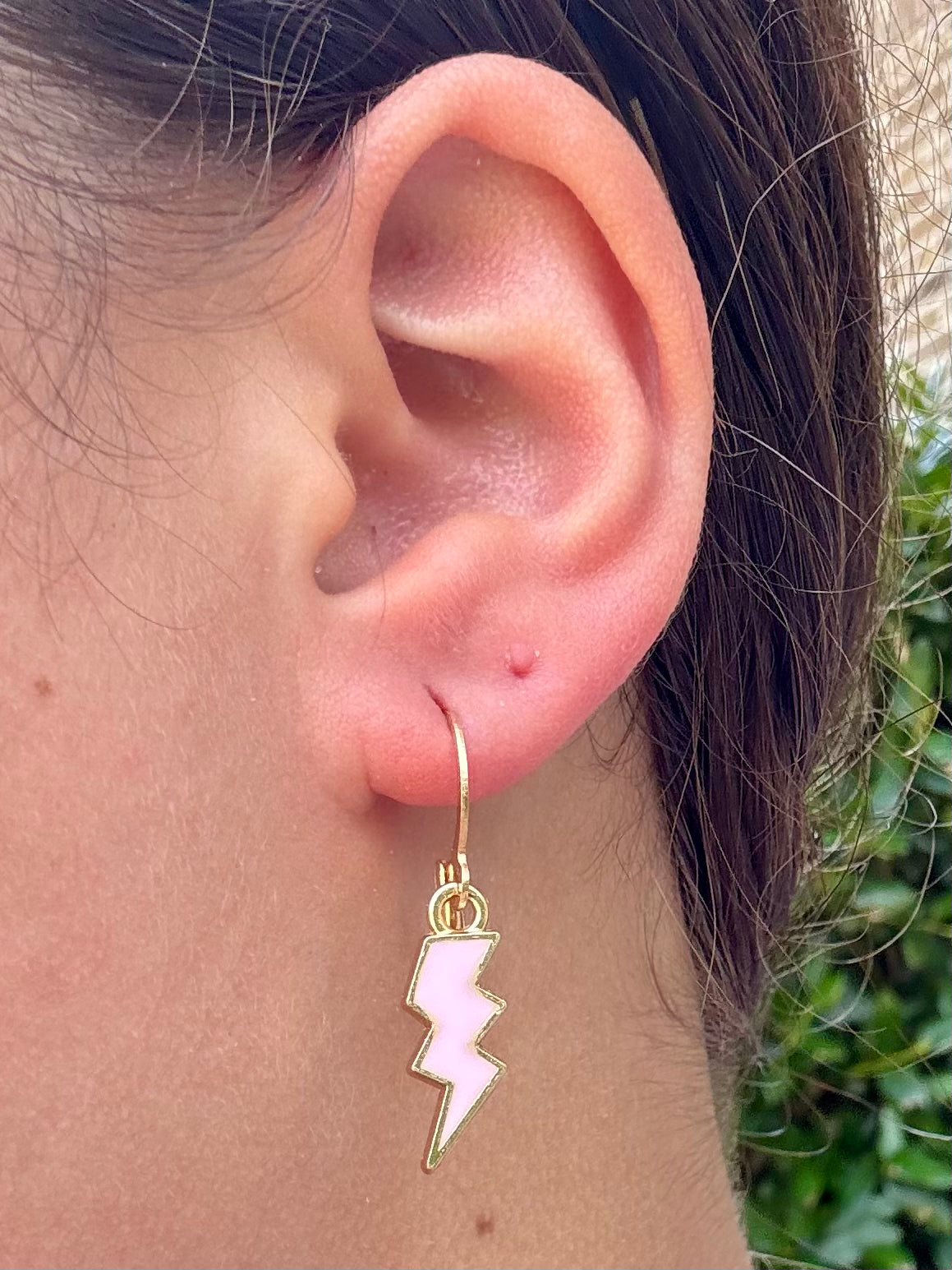 These huggies feature a bold enamel lightning bolt charm available in multiple colors—aka your new favorite way to add a statement to your stack. Made with non-allergenic materials and a comfy click-closure, they’re lightweight, fun, and full of personality