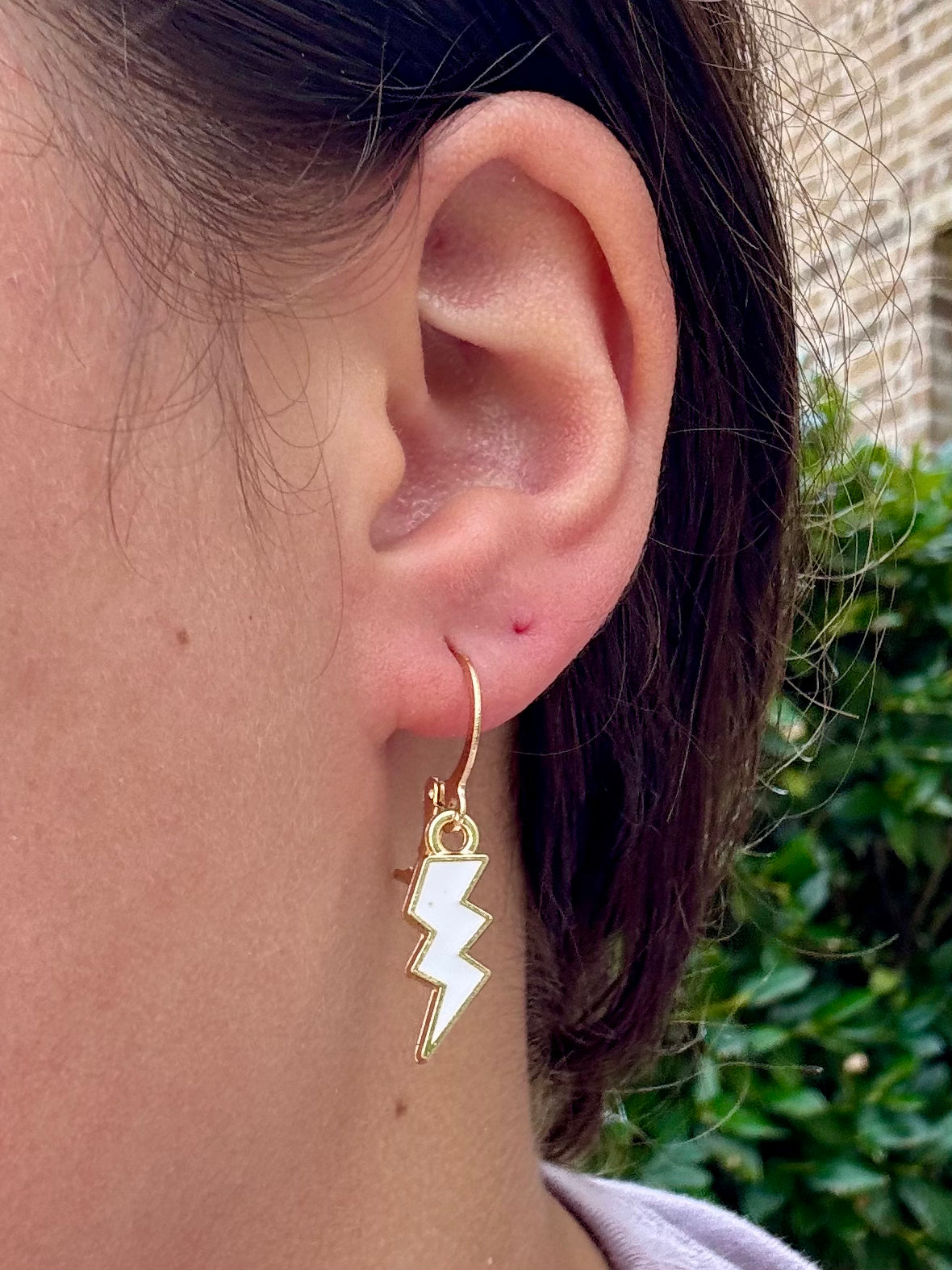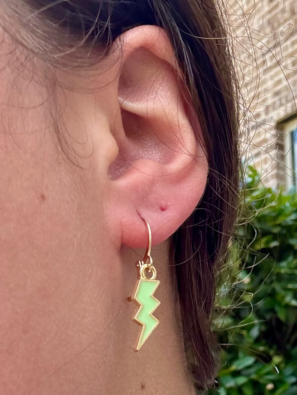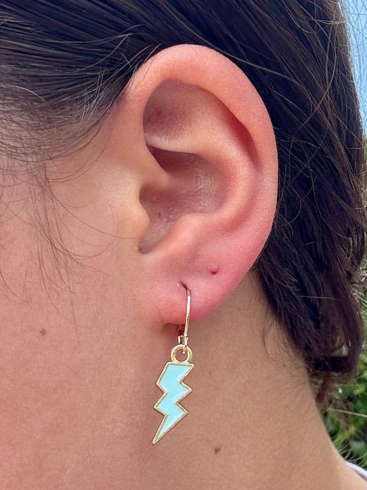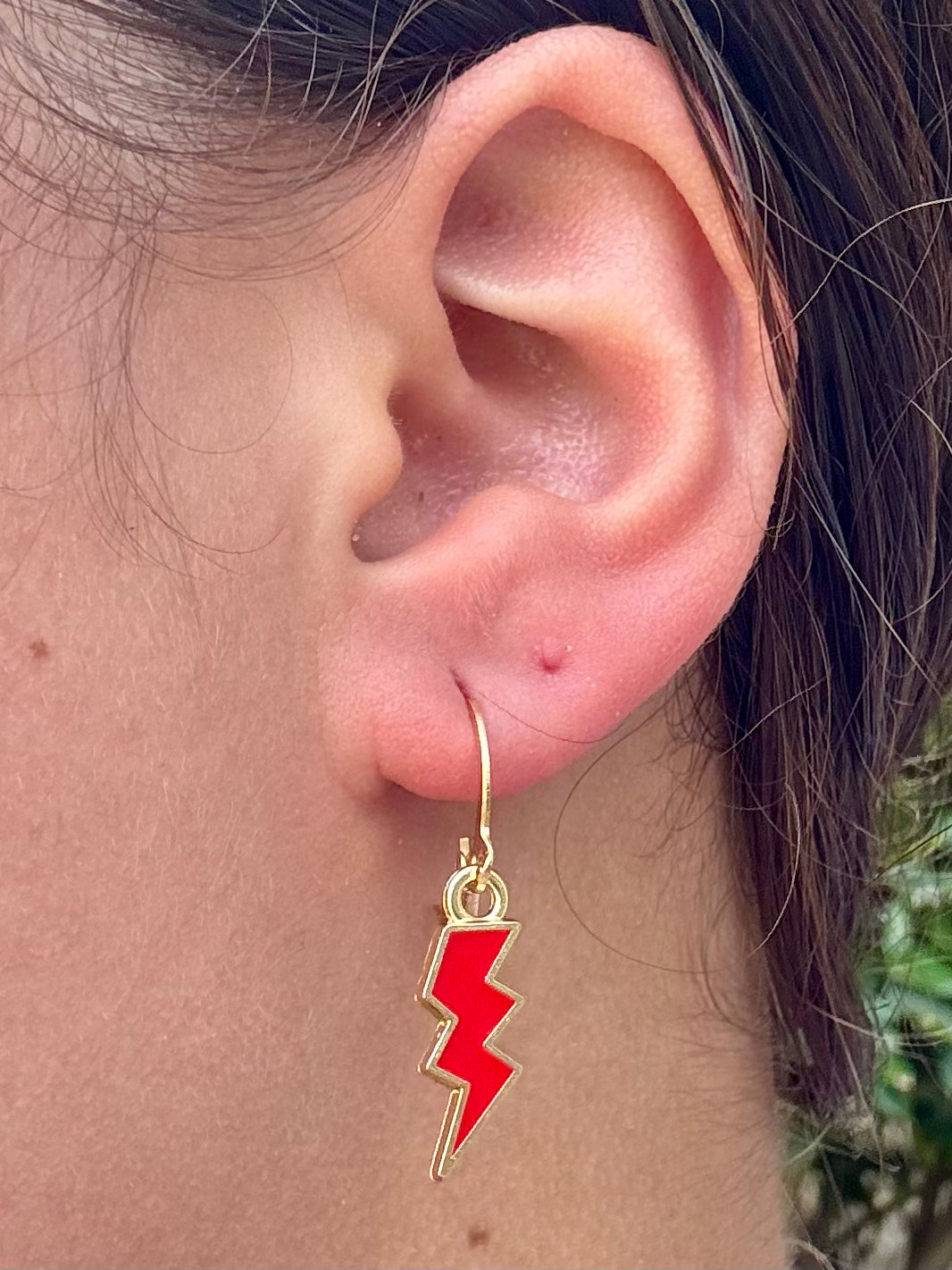 These huggies feature a bold enamel lightning bolt charm available in multiple colors—aka your new favorite way to add a statement to your stack. Made with non-allergenic materials and a comfy click-closure, they’re lightweight, fun, and full of personality