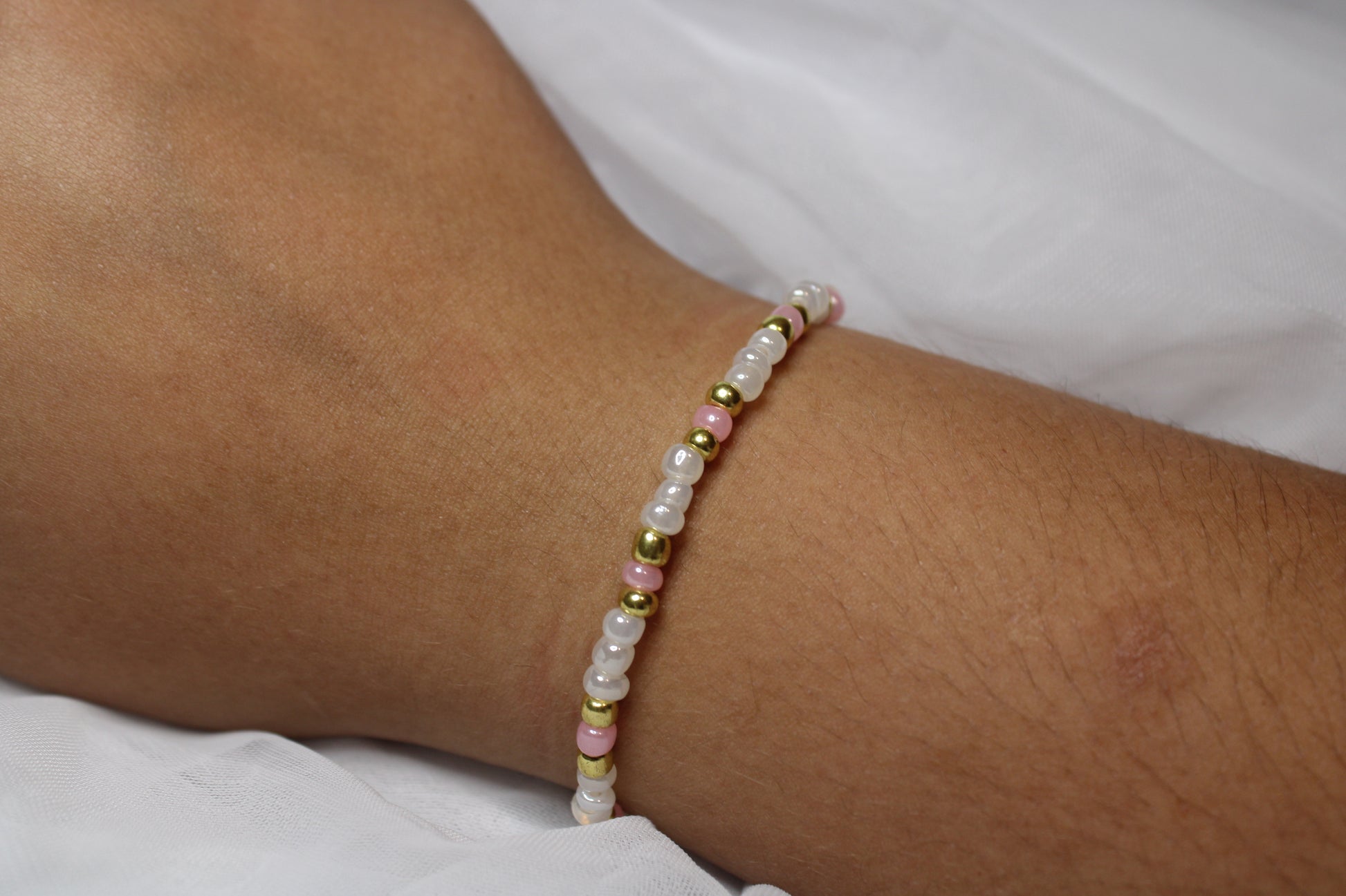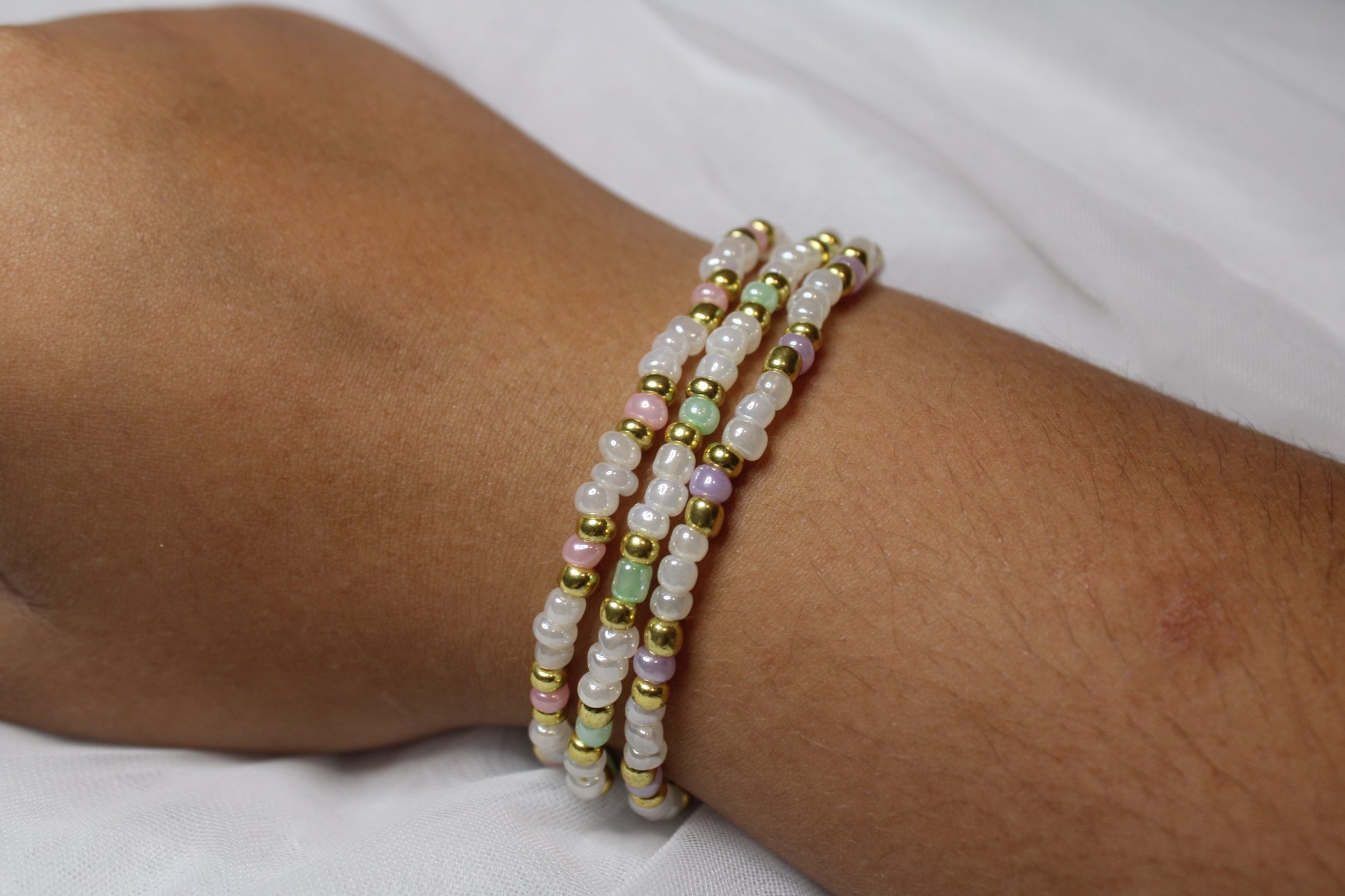 The perfect mix of dainty and dreamy. The Frosted Sprinkles Bracelet features soft pearly beads paired with subtle gold accents for a timeless, feminine touch. Its gentle shimmer and balanced design make it a standout piece for everyday wear or layered with your favorite stacks. Elegant, effortless, and just the right amount of sparkle.